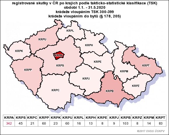 Tabulka: krádeže vloupáním leden - květen 2020