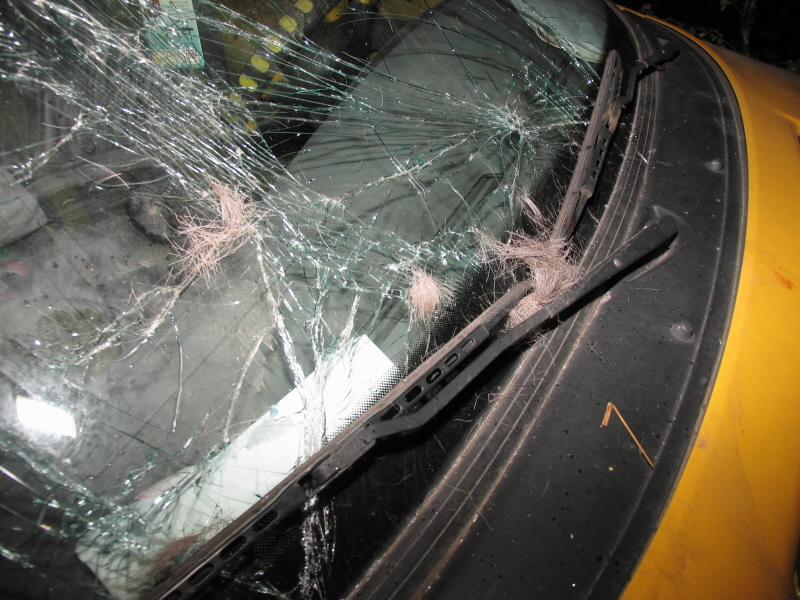V konkrétní situaci při srážce se zvěří vzniká škoda jejímu majiteli, kterým bude většinou místní myslivecké sdružení. Proto zde platí povinnost věc ohlásit policii. A to i v případě, že zvěř z místa utekla.